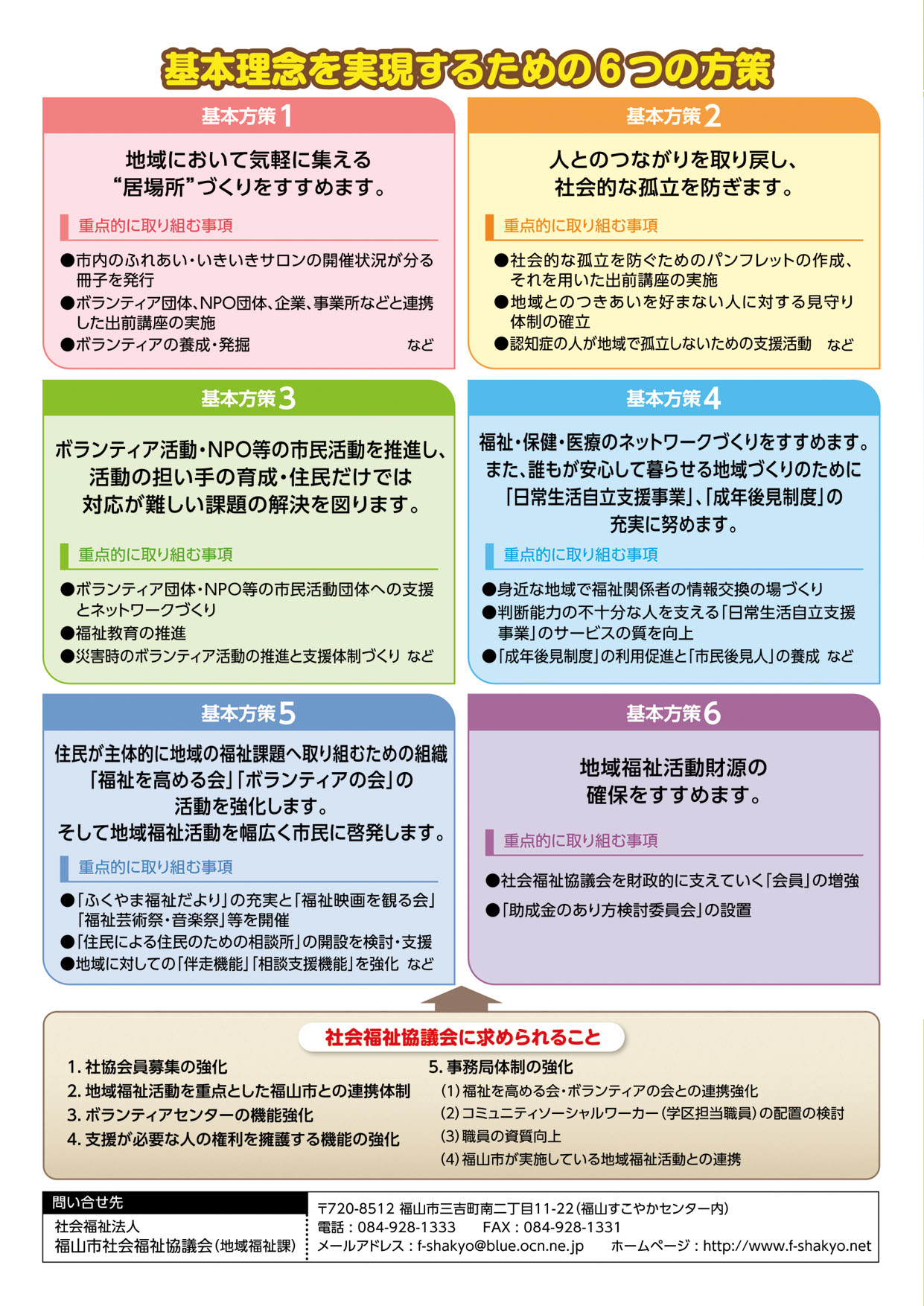 | 【問い合わせ先】 福山市社会福祉協議会(地域福祉課) 電話:084-928-1333 FAX:084-928-1331 |
